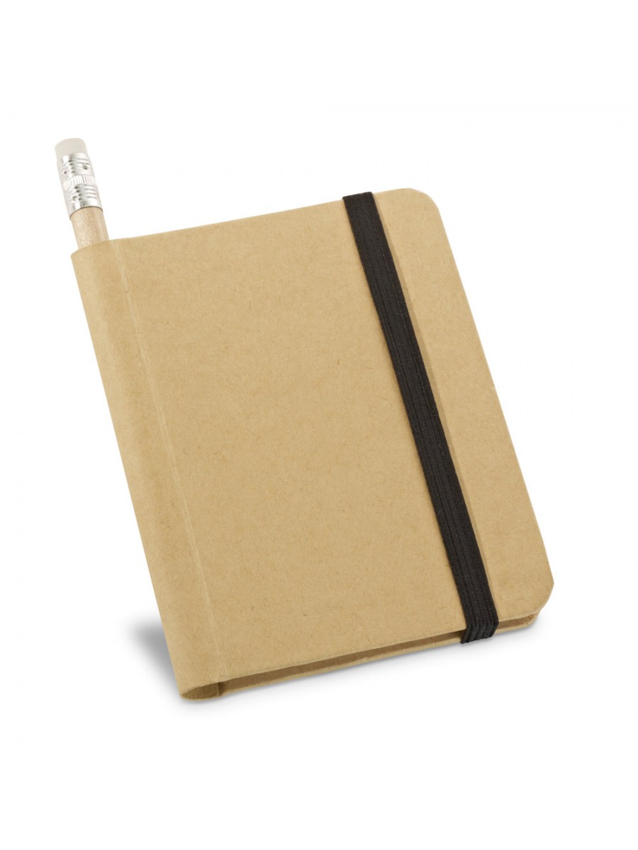 Block notes A7 con 140 pagine semplici (60 g/m²), copertina rigida ed elastico. Include una matita con gomma sulla punta. Questo prodotto è realizzato con materiale certificato FSC™ e altri materiali controllati, ad eccezione della matita. 82 x 105 mm