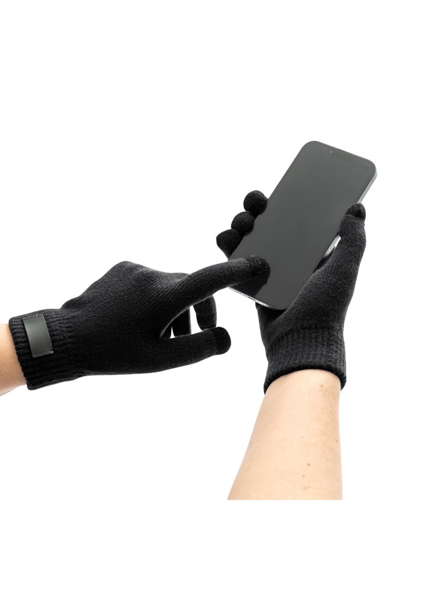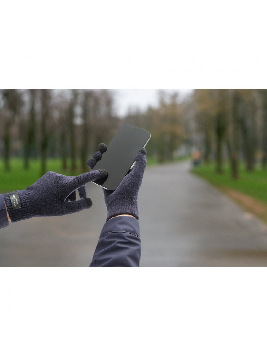Guanti in poliestere riciclato (100% rPET), con punta touch per poter utilizzare comodamente lo smartphone senza togliersi i guanti. Sono dotati di un'etichetta in PU per la personalizzazione. 210 x 110 mm