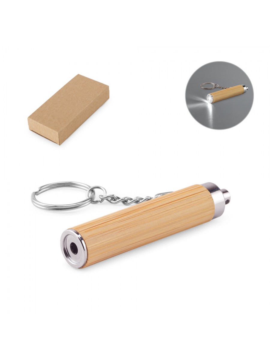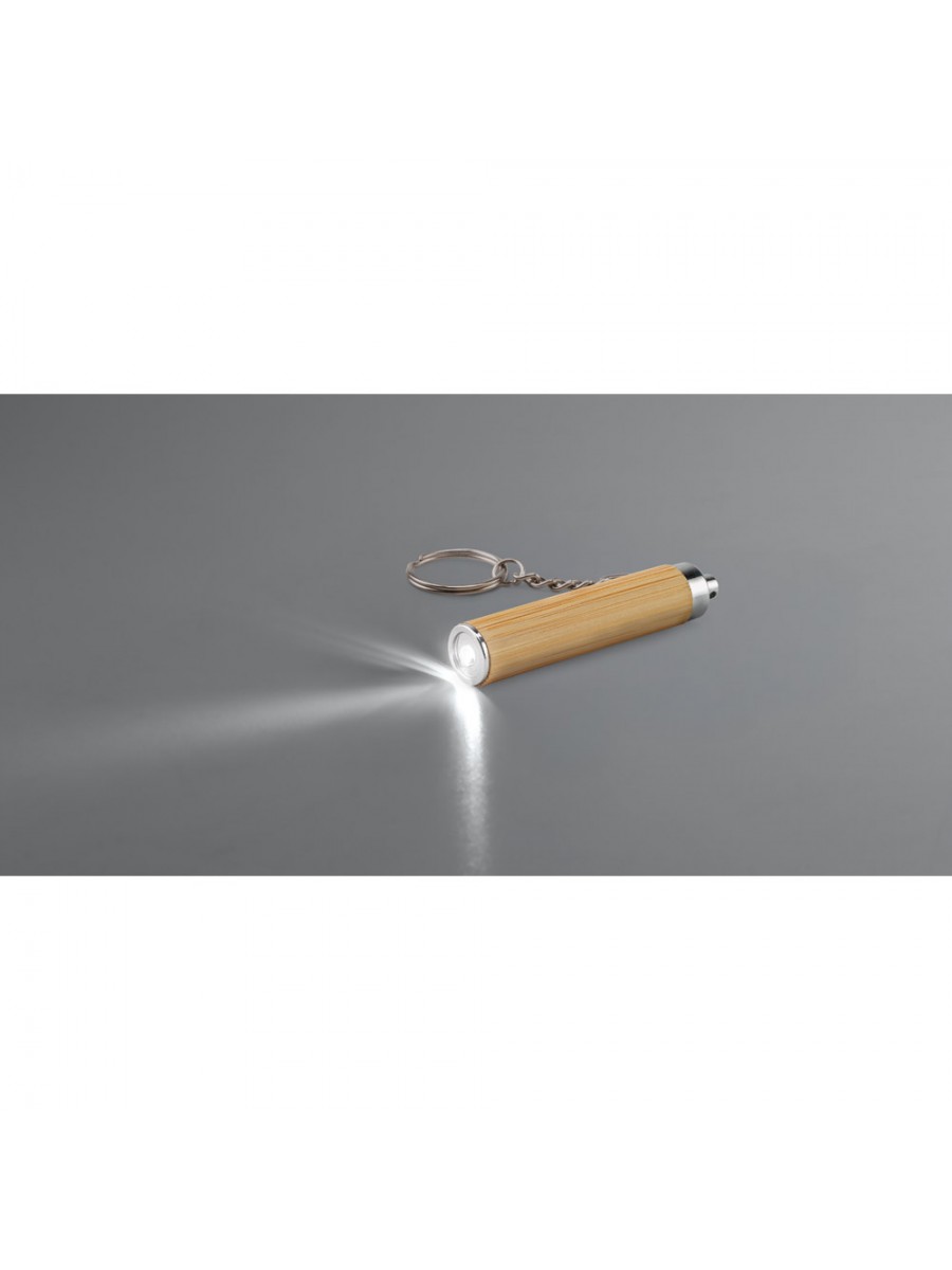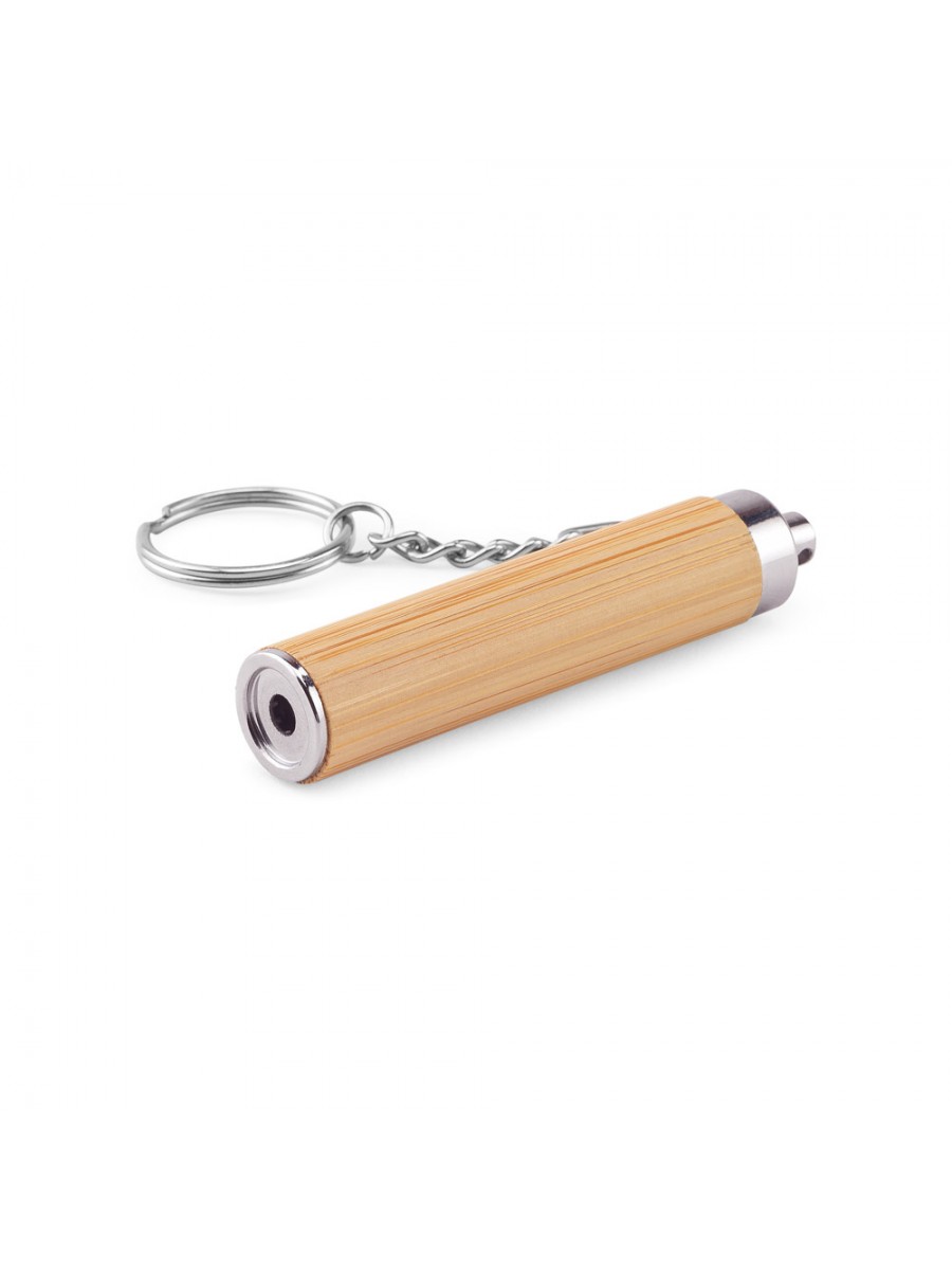 Portachiavi in bambù e ABS con torcia a LED. Include 3 batterie LR41. Fornito in una confezione regalo in carta kraft ø15 x 75 mm | Custodia: 79 x 27 x 19 mm