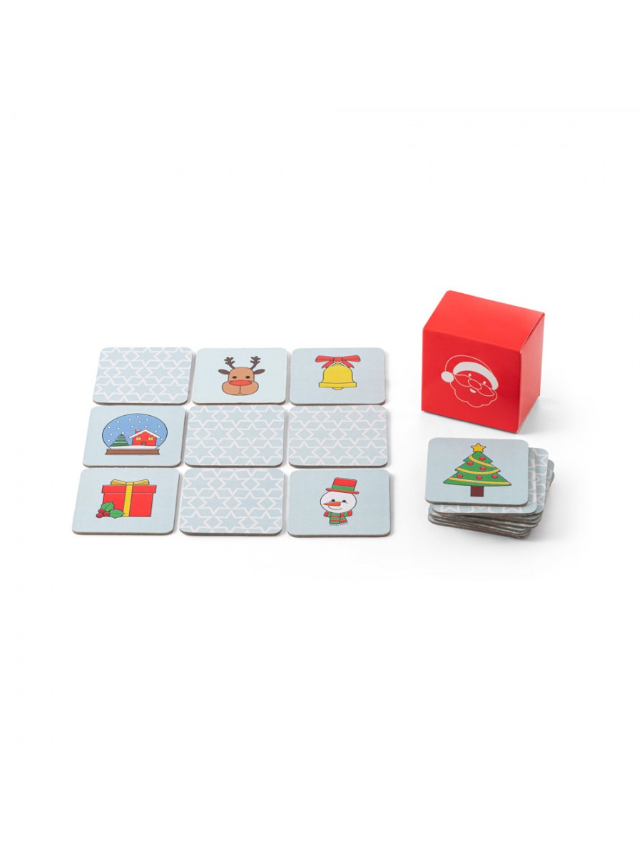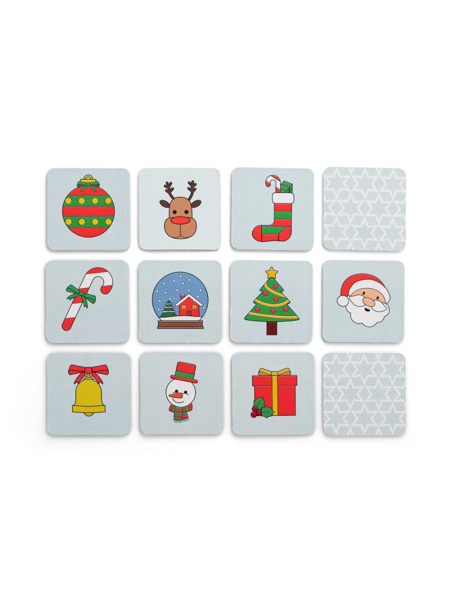 Gioco di memoria da 20 pezzi con figure natalizie, leggero e facile da trasportare. La confezione del gioco è personalizzata. Pezzi: 50 x 50 x 1.5 mm | Scatola: 56 x 54 x 35 mm