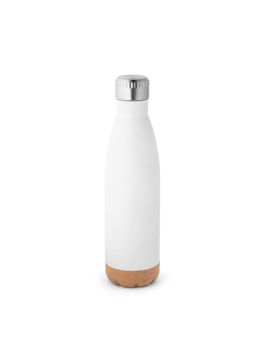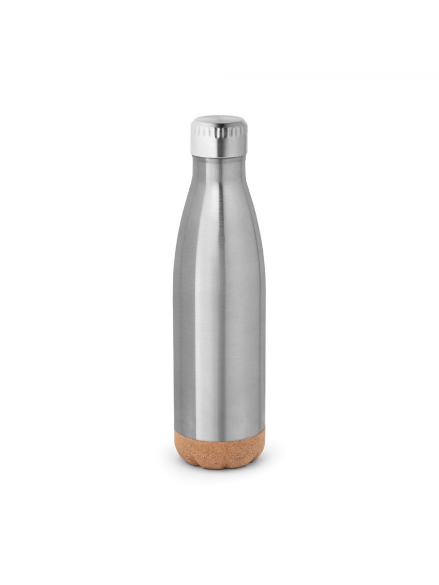 Borraccia termica da 560 mL in acciaio inox con base in sughero e doppio corpo. Fornita in confezione regalo di carta kraft. Trattandosi di un prodotto composto da materiali naturali, il colore del prodotto può variare da un prodotto all'altro. ø71 x 258 mm | Scatola: 76 x 76 x 272 mm