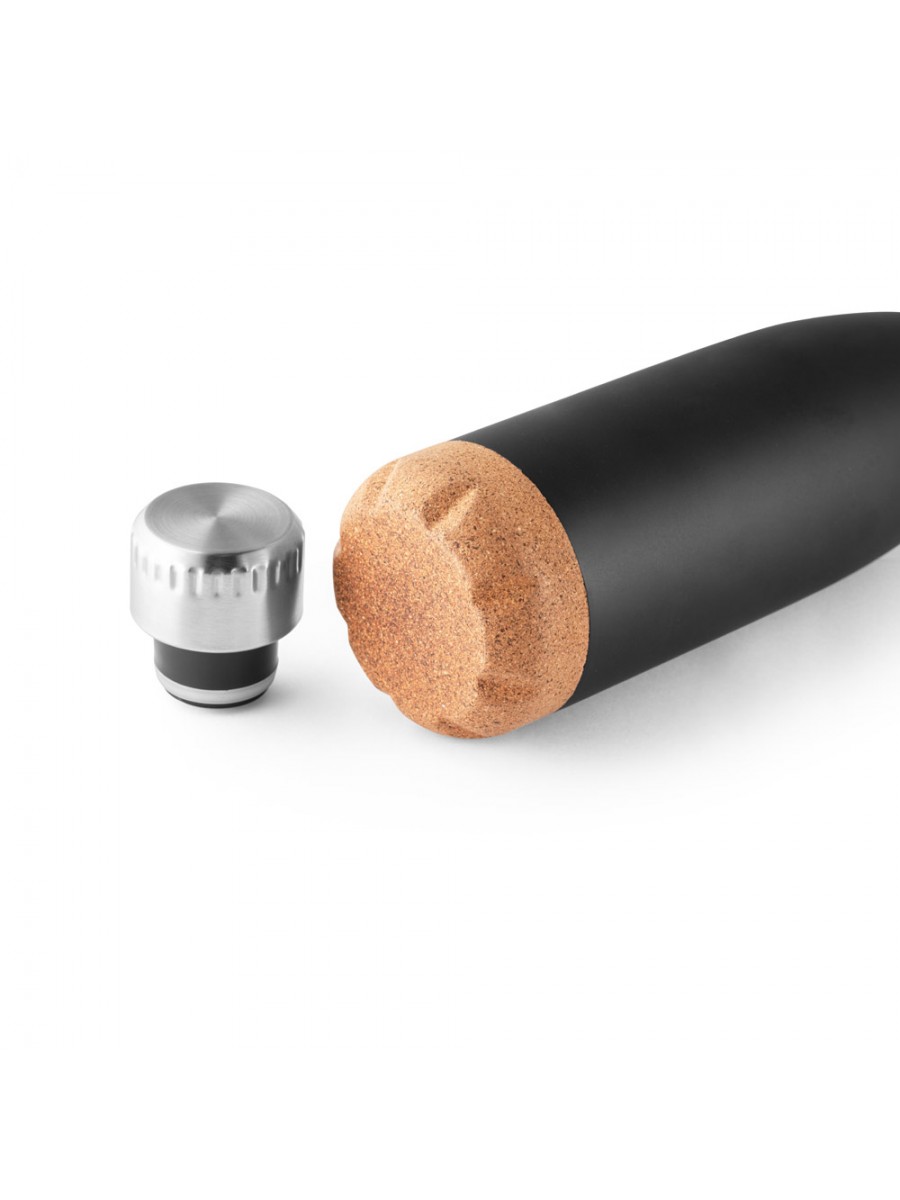 SOLBERG. Borraccia termica in acciaio inox con base in sughero 560 mL - Nero