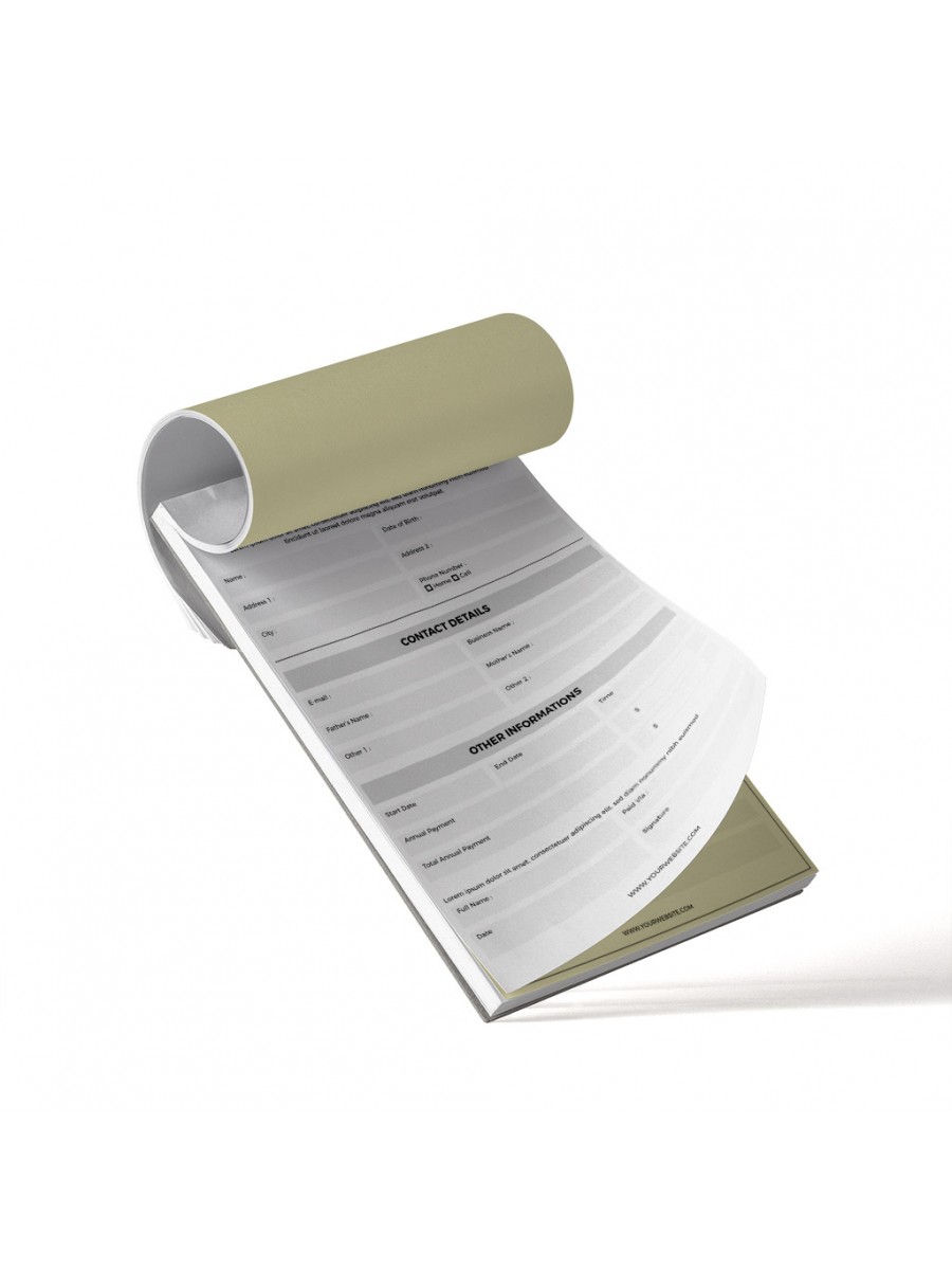 Ogni blocco può essere composto da duplice o triplice copia; la stampa del primo foglio può essere a colori, il secondo e l'eventuale terzo foglio sono stampati in bianco e nero.