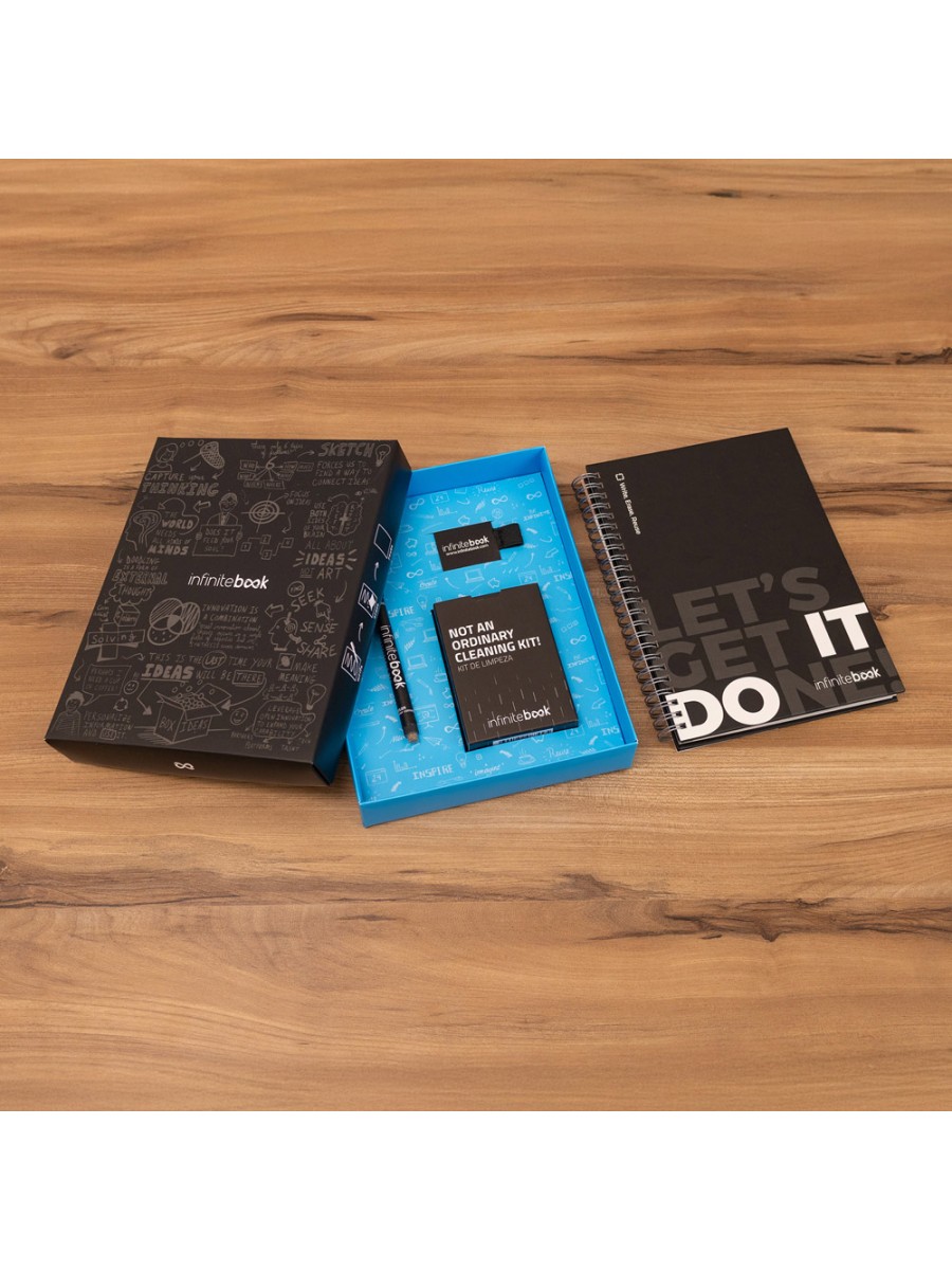 STARTER KIT INFINITEBOOK. Set composto da un "Infinitebook" con copertina rigida, 1 kit di pulizia, 1 pennarello e 1 porta pennarello