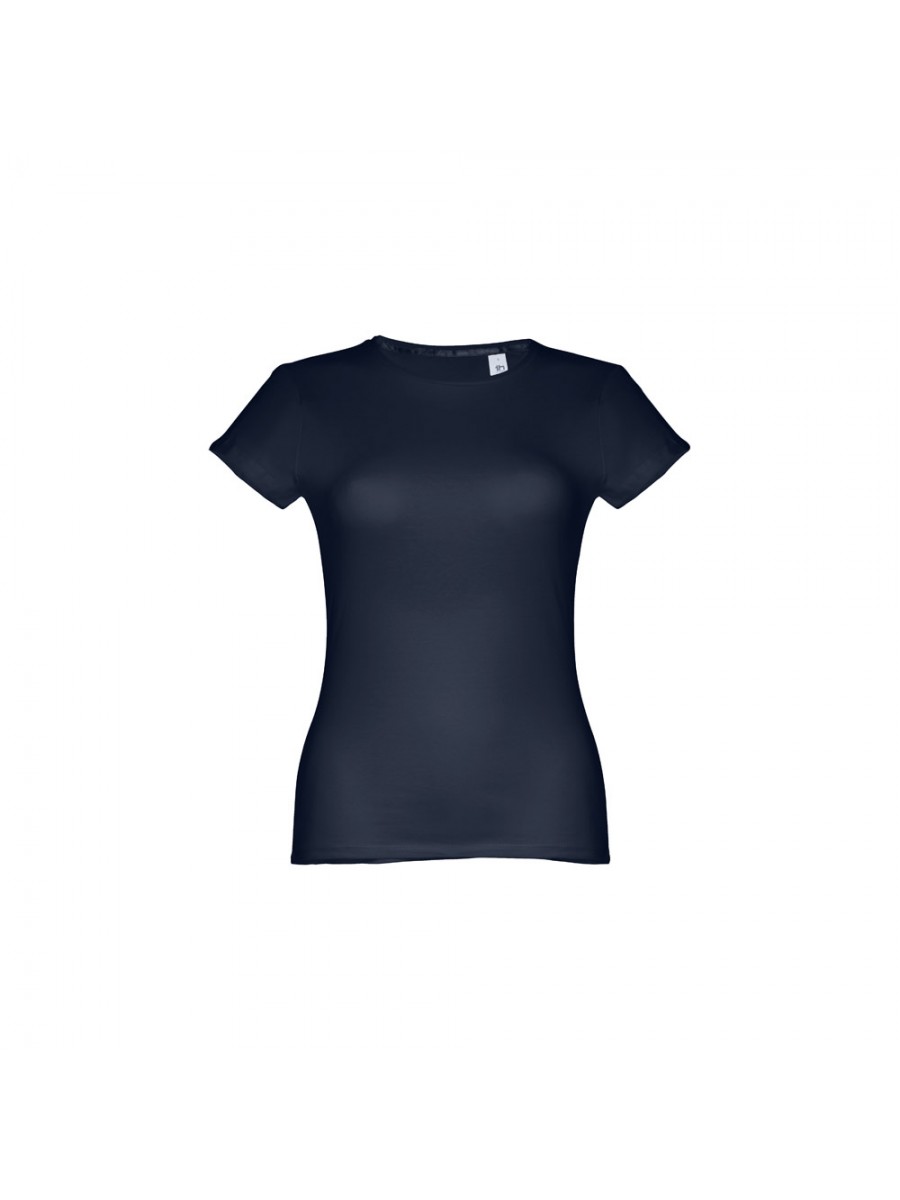 T-shirt aderente da donna in jersey di cotone 100% (150 g/m²) con filo in cotone cardato (colore: 183 90% cotone/10% viscosa, colore 196: 98% cotone/2% viscosa). Girocollo sottile in jersey con nastro di rinforzo in raso. Cuciture ribattute doppie sulle maniche e sull'orlo inferiore. Taglie: S, M, L, XL, XXL