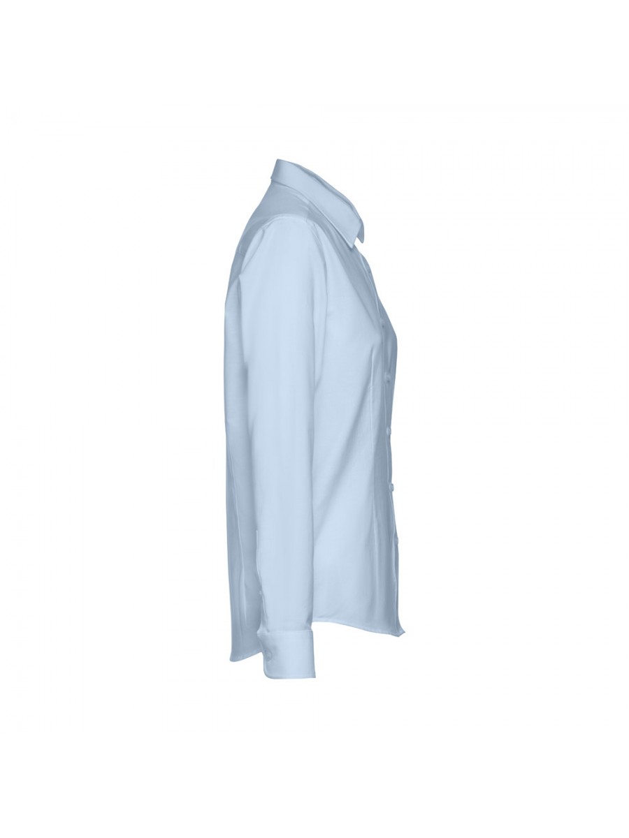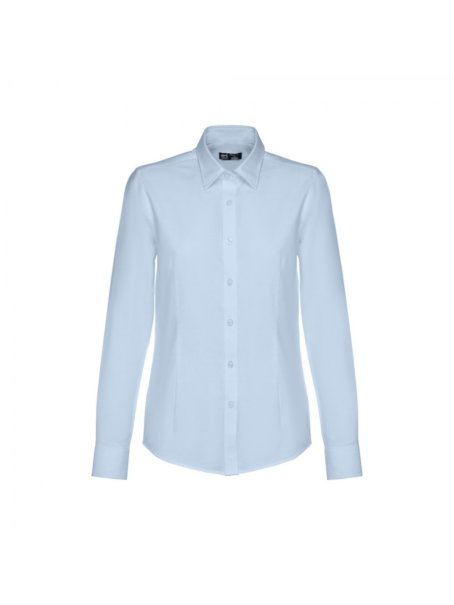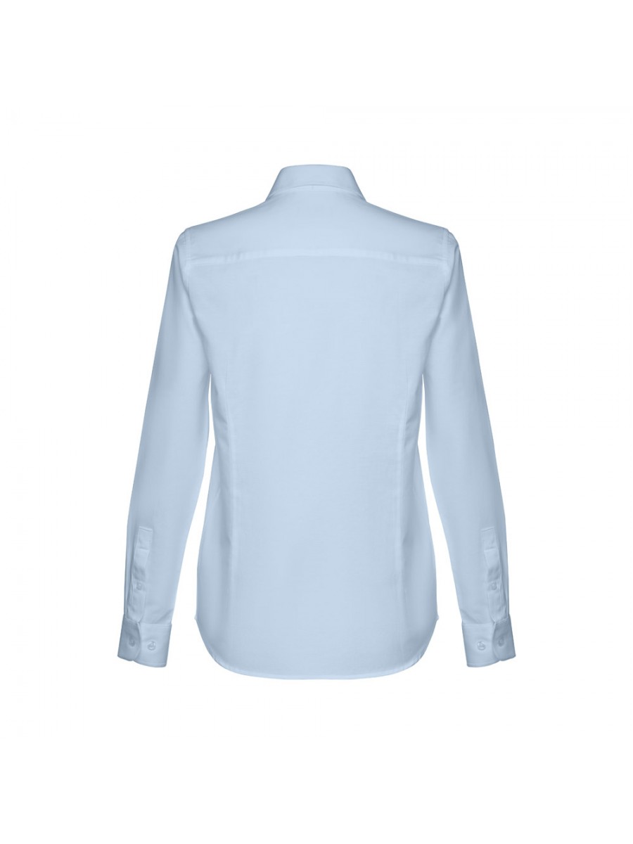 Camicia oxford da donna a maniche lunghe in 70% cotone e 30% poliestere (130 g/m²). Polsini regolabili con 2 bottoni e maniche con 1 piega. Vestibilità aderente con 2 pinces posteriori e anteriori e e abbottonatura con 7 bottoni perlati. Taglie: S, M, L, XL, XXL